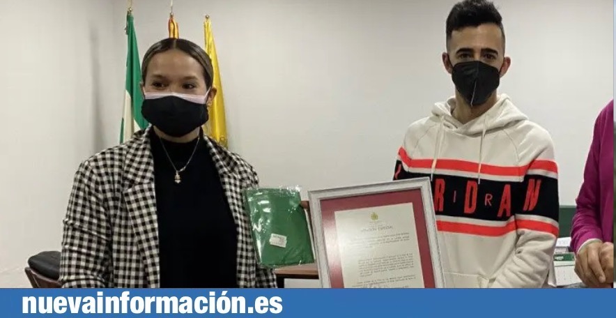 Alconchel y Lobato han entregado a este joven barreño de 21 años un diploma de reconocimiento en nombre de la Corporación local.