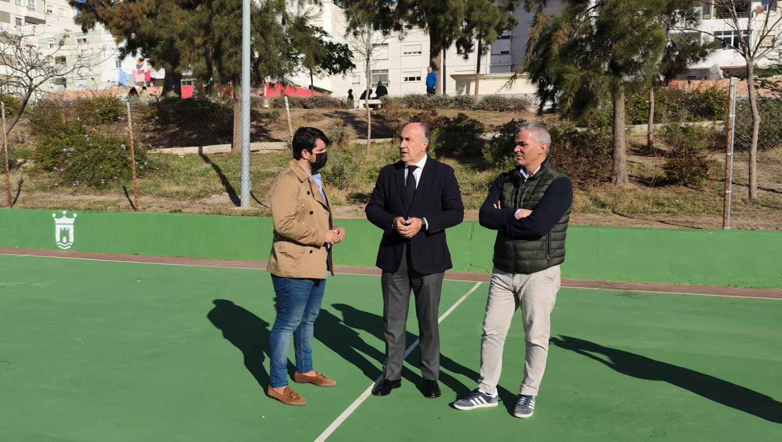 El alcalde de Algeciras, José Ignacio Landaluce, y el teniente de alcalde delegado de Deporte, Jorge Juliá, han supervisado las actuaciones de rehabilitación que se han llevado a cabo en la pista deportiva sita en la calle Paco de Lucía de El Saladillo.